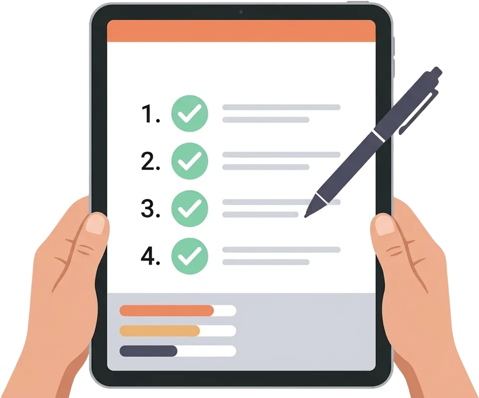 Du planlegger kontroller, gjennomfører dem med sjekklister, registrerer funn og følger opp tiltak før alt dokumenteres.